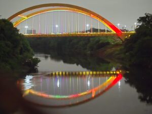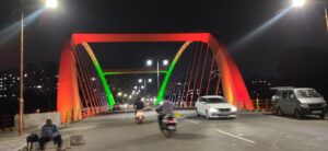 पिंपरी (लोकजागृती):- रंगीबेरंगी झगमगाटाने उजळलेला ब्रिज… विविध रंगांच्या छटा निर्माण करणारी रोषणाई… असा वेगळाच अनुभव थेरगाव ते चिंचवड दरम्यानच्या बटरफ्लाय ब्रिजवरून प्रवास करताना नागरिकांना येत आहे. पवना नदीवर उभारलेला हा ब्रिज आता रोषणाईच्या झळाळीने अधिकच खुलून दिसत असून, रात्रीच्या वेळी ब्रिजवर साकार होणारा हा रंगोत्सव नागरिकांना आकर्षित करत आहे.