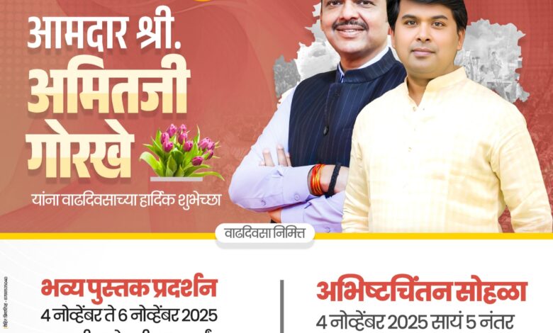 यासोबतच, आमदार अमित गोरखे यांचा अभीष्टचिंतन सोहळा ४ नोव्हेंबर रोजी सायंकाळी ५:०० वाजता राजर्षी शाहू क्रीडांगण येथे आयोजित करण्यात आला आहे. यानिमित्त अनेक मान्यवर उपस्थित राहणार असून, हा सोहळा नागरिकांसाठी विशेष आकर्षण ठरणार आहे.